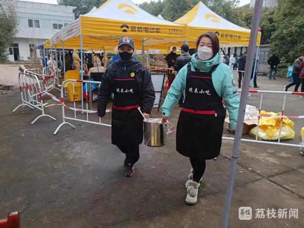 鹅湖青年企业家协会赠送50箱奶茶,“悦来小吃”店提来了红糖姜水。