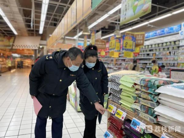 随后,执法人员来到大润发市区店,只见大米、食用油、蔬菜等被整齐摆放在货架上,不少商品还被贴上了促销的标签。执法人员现场查看了超市内的物价情况,并详细了解了超市内生活必需品的储备情况,呼吁市场经营主体诚信经营,杜绝哄抬价格、囤积居奇等扰乱市场的违法行为,确保市场平稳有序。“生活必需品我们备了一个月的量,商品价格在苏锡常地区都是统一的,价格稳定。”大润发市区店客服经理缪阳阳说。