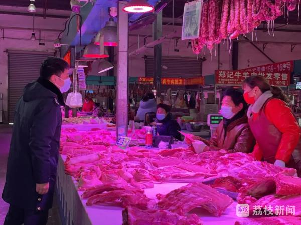在张家港青草巷农副产品批发市场,市场监管人员提醒商户依法合规守信经营,加强价格行为自律,配合政府有关部门做好市场保供稳价工作。