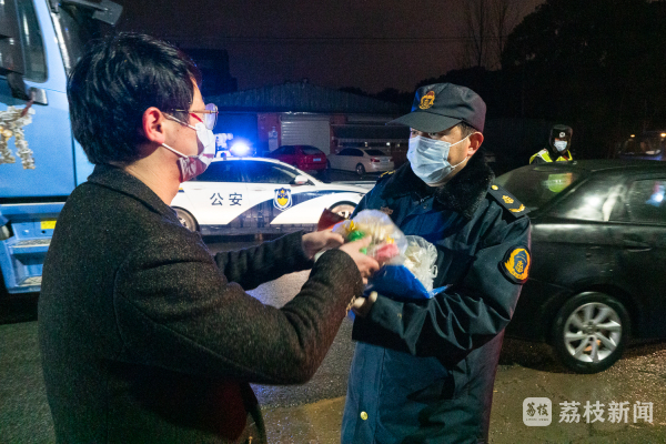虽然工作比较辛苦,但是大家也感受到了来自各方的关心,卡口附近的村定时送来热气腾腾的饭菜,有市民送来了饼干、方便面等慰问品。吴加祥说:“卡口检查来不得半点的麻痹,疫情防控来不得半点的松懈,让我们一起加油,共同做好疫情防控工作。”