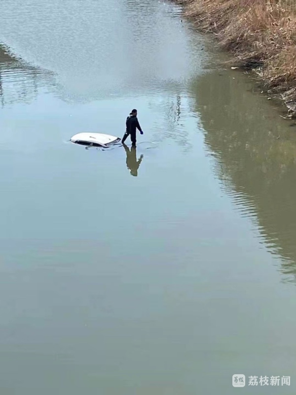 2月20日,镇江润州交警事故中队接到群众报警:“在辖区长干渠诈输村河段发现一辆轿车浸泡在水中,不知道是否有人在车内。”事故中队立即派出两辆警车,四名警力赶赴现场。
