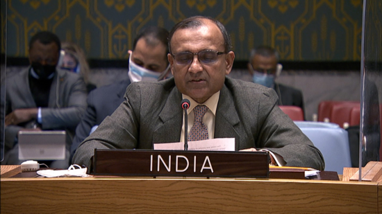 纽约当地时间21日联合国安理会就乌克兰局势召开紧急会议。据美国有线电视新闻网(CNN)报道,印度常驻联合国代表蒂鲁莫西在会上呼吁“各方保持克制”,称随着乌克兰与俄罗斯之间的紧张局势升级,“建设性外交是当务之急”。