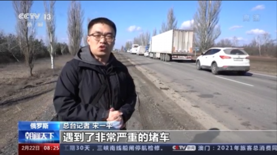 总台记者 宋一平:现在我们是距离俄乌边境大概是5公里左右的地方,遇到了非常严重的堵车,大概已经停留了20多分钟了。据那边的有些同事说,可能是因为有交警在护送乘坐大巴车进入俄罗斯境内的乌克兰民众。