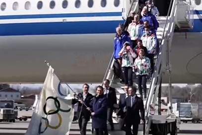 当地时间21日,奥林匹克会旗抵达第二十五届冬奥会的举办城市之一——意大利米兰市。在当地的马尔彭萨机场,米兰市市长萨拉和科尔蒂纳丹佩佐市市长盖迪纳挥舞着五环旗,从登机口缓缓走下。同行的还有北京冬奥会短道速滑女子500米金牌得主方塔纳,冰壶混双金牌得主莫萨纳等运动员。