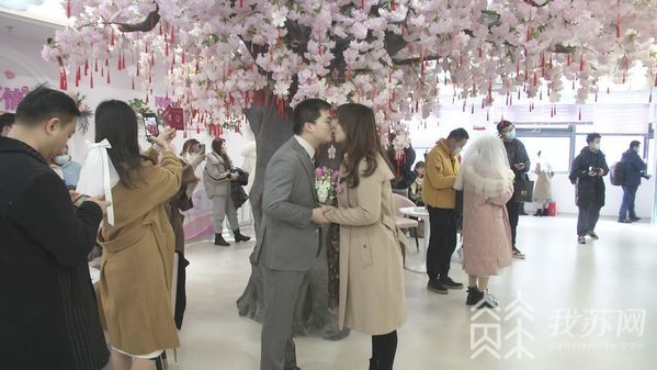 据介绍,除了户口在南京的新人外,也有一些外地居民前来办理。2月22日当天,建邺区婚姻登记处预计将为500对新人办理结婚登记,工作人员介绍,近期来办理的新人比去年同期出现了明显提升。