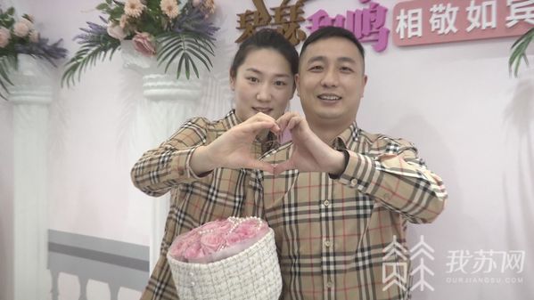 而新娘王女士和新郎许先生提前一个月在网上进行了预约,今天两人也穿着情侣装来到现场:“希望未来白头偕老,共同努力。”