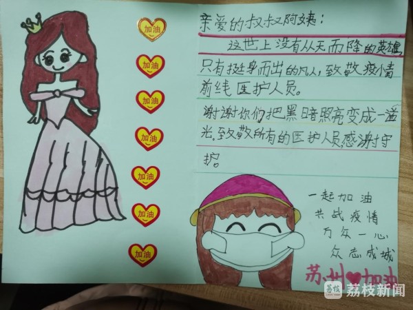 “亲爱的叔叔阿姨:这世上没有从天而降的英雄,只有挺身而出的凡人,致敬疫情前线工作人员!谢谢你们把黑暗照亮,变成一道光。致敬所有的医护人员,感谢守护!”在苏州甪直镇新城华府小区核酸检测点,医护人员收到了这样一张充满鼓励、感谢话语的爱心卡片。