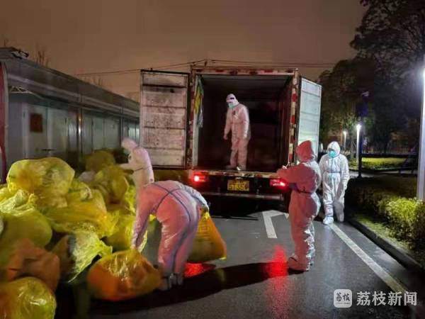 2月20日18时,苏州高新区第三轮区域核酸检测还未结束,高新区生态环境执法局的转运员顾顺灏戴上口罩、手套,穿上防护服和隔离衣,等待着社区归集点转运车辆的到来。当天19时35分,来自苏州高新区学府社区的医疗废物转运车辆缓缓驶入了位于狮山横塘街道金屋装饰广场的集中点。在仔细检查所有的周转箱是否完好,并做好收集、称重、登记、盘点、消杀等一系列规范流程后,顾顺灏和同事们把具有高污染性的医疗废物搬上了前往高新区环保服务中心的医疗废物转运车。