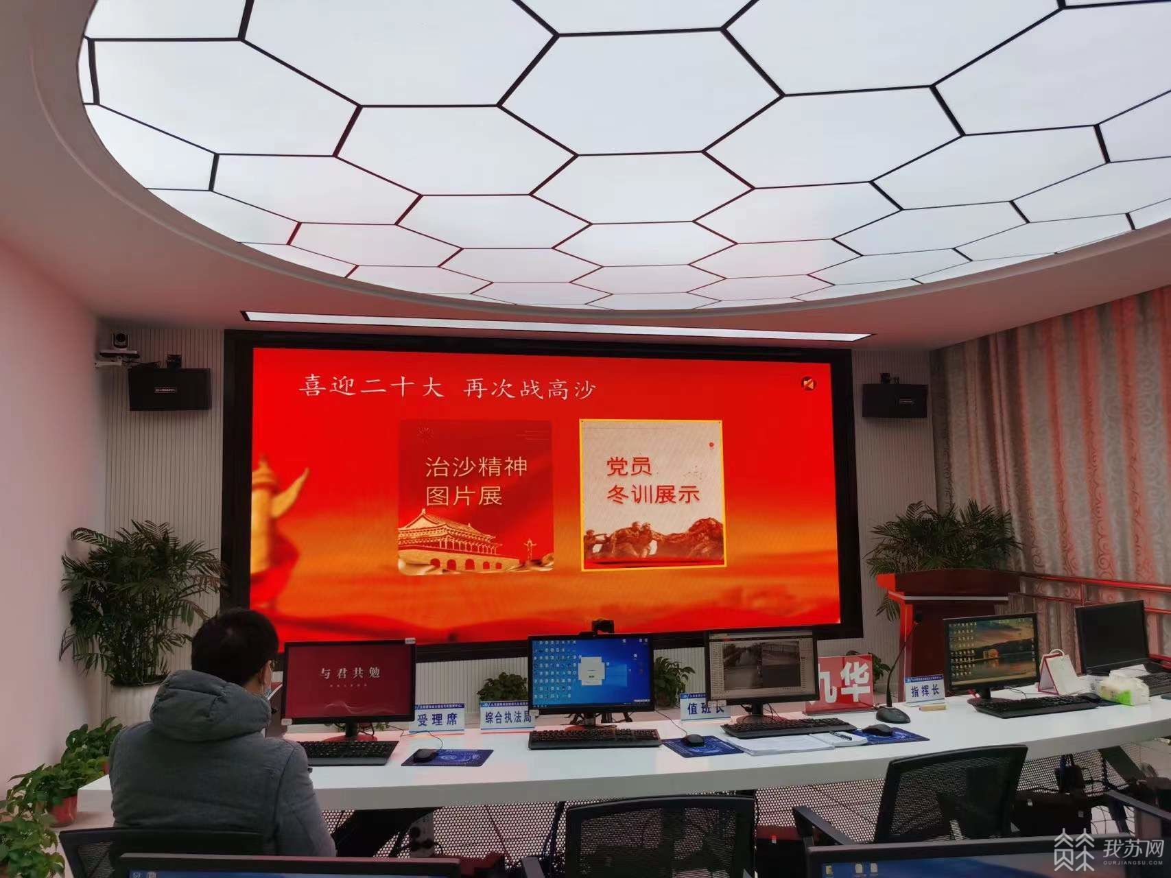 “1970年,县革委提出‘一年削平高沙土,二年实现旱改水,三年建成大寨县’的口号……就这样,我们脚下的这片土地,上演了一场轰轰烈烈、波澜壮阔的‘治沙革命’……”在九华镇镇域治理现代化指挥中心,该镇党政办工作人员钱冬霞正在做一场名为《战高沙、破难题,砥砺奋进开新局》的理论宣讲。在台下,工作人员也有条不紊地同步操作着,将宣讲视频实时传播到智慧九华云平台。