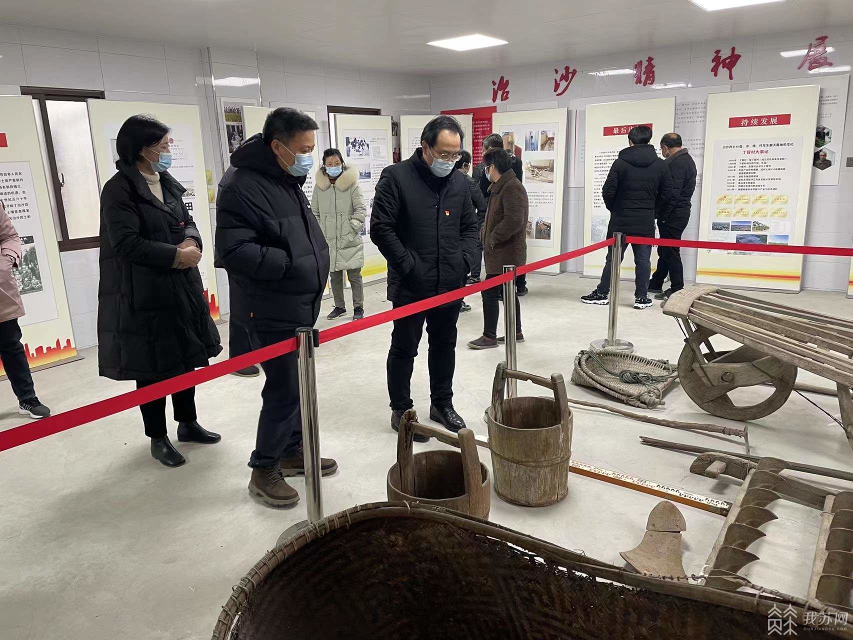 在磨头镇丁冒村治沙精神纪念馆,陈列了不少“治沙”时期老百姓用过的桌椅、饭盒、盐罐、油灯、簸箕等老物件。作为理论宣讲课堂,可以说再合适不过了。