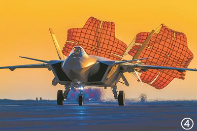 训练返航,战机拖着减速伞滑行。