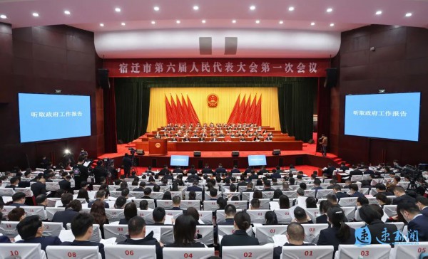 2月23日上午,宿迁市第六届人民代表大会第一次会议在骆马湖总部经济会议中心开幕。市委书记、市人大常委会主任王昊主持会议,市委副书记、市长陈忠伟代表市人民政府向大会作政府工作报告。