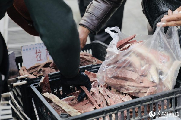 顾客正在选购牦牛肉干。人民网 次仁罗布摄