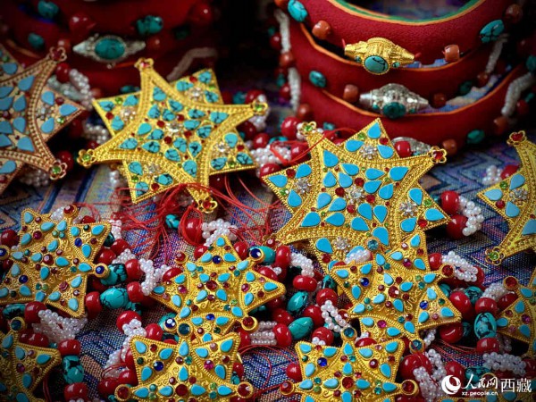 藏民族在重要节日和场合佩戴的首饰。人民网 次仁罗布摄