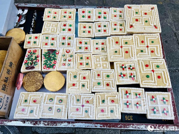 “卡塞”是藏历新年的传统食物,用酥油炸制而成,然后再裹上白砂糖并上色。人民网 次仁罗布摄