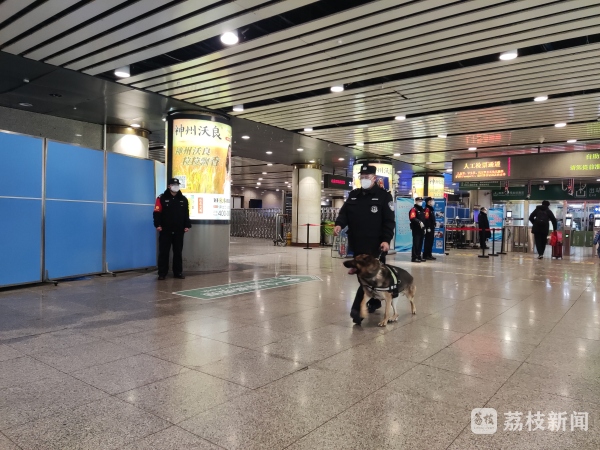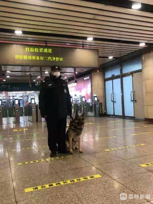 警犬“坦克”协助民警开展治安面巡逻防控,维护车站秩序,发现检查可疑人员和物品,有效净化治安环境。