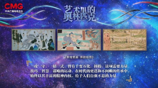 中央广播电视总台央视奥林匹克频道播出的《艺术里的奥林匹克》节目,日前播出《敦煌壁画·摔跤组图》,从敦煌壁画中再现中国摔跤运动的历史。