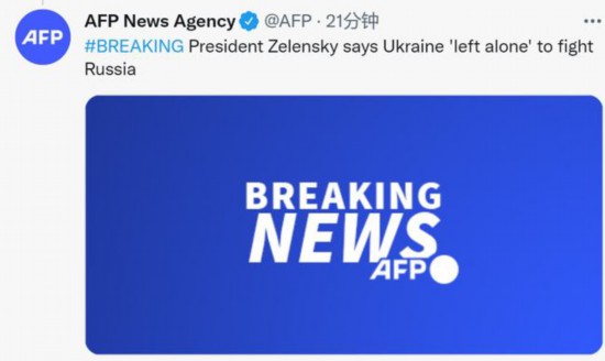 法新社刚刚消息,乌克兰总统泽连斯基称,乌克兰在“孤军奋战”对抗俄罗斯。