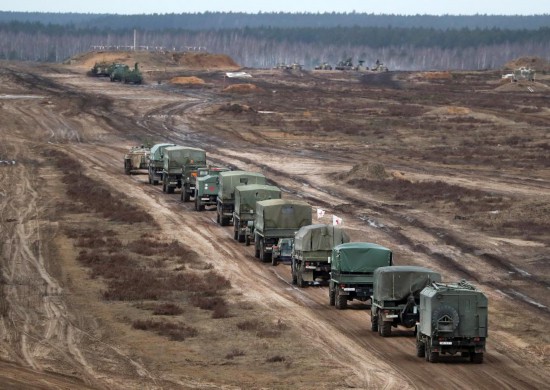 2月19日,俄罗斯与白俄罗斯的“联盟决心-2022”联合军演最后阶段实战演习在白俄罗斯奥布兹—列斯诺夫斯基靶场进行。(新华社发,任科夫摄)
