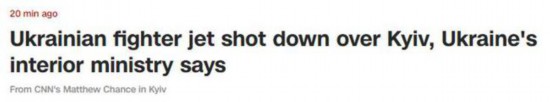 据美国有线电视新闻网(CNN)最新消息,乌克兰内政部副部长叶夫根尼称,一架乌克兰苏-27战斗机周五(25日)早些时候在首都基辅上空被击落。