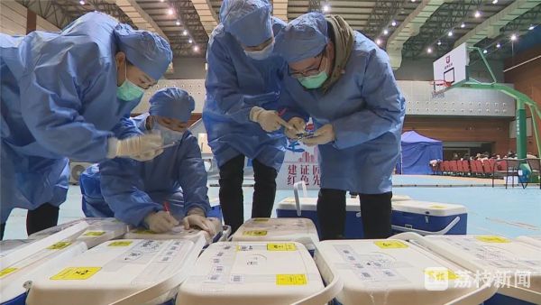 近日,江阴陆续在相关镇(街)、园区开展区域核酸检测工作,而位于江阴国际会展中心场馆内的江阴市人民医院新冠核酸检测基地,医务工作人员通宵达旦地奋战在检测一线,全力保障核酸检测工作顺利完成。
