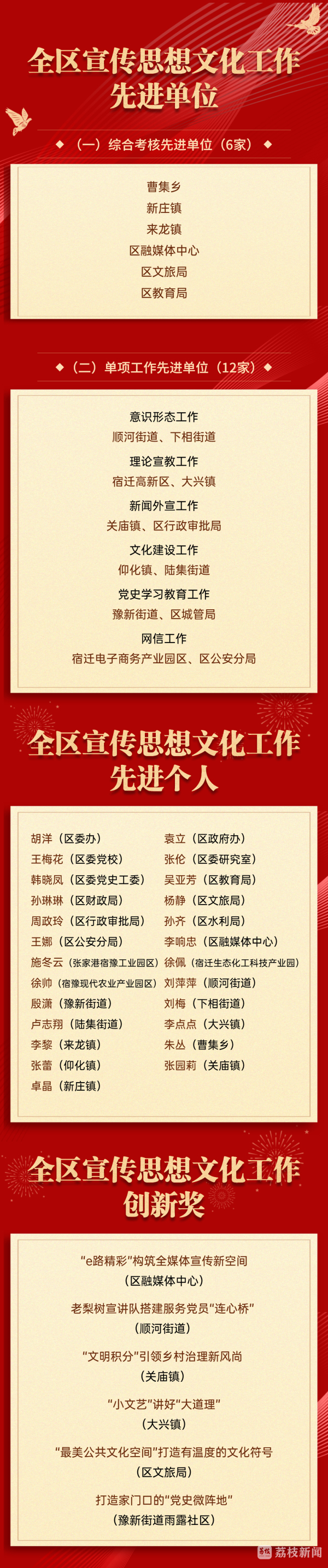 全区宣传思想文化工作先进单位、先进个人和创新奖具体获奖名单,一起来看吧。