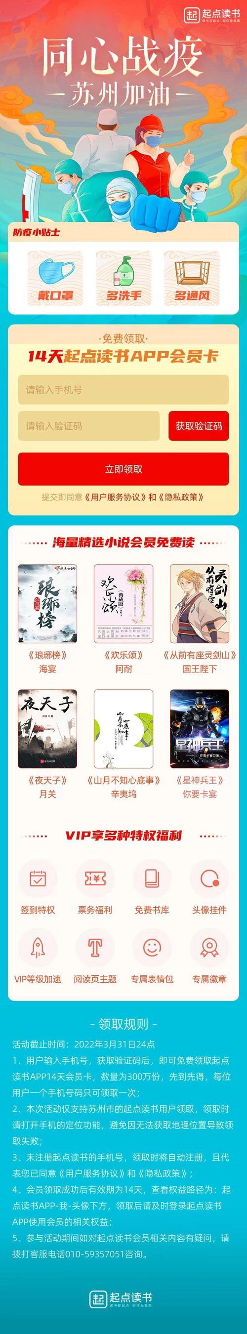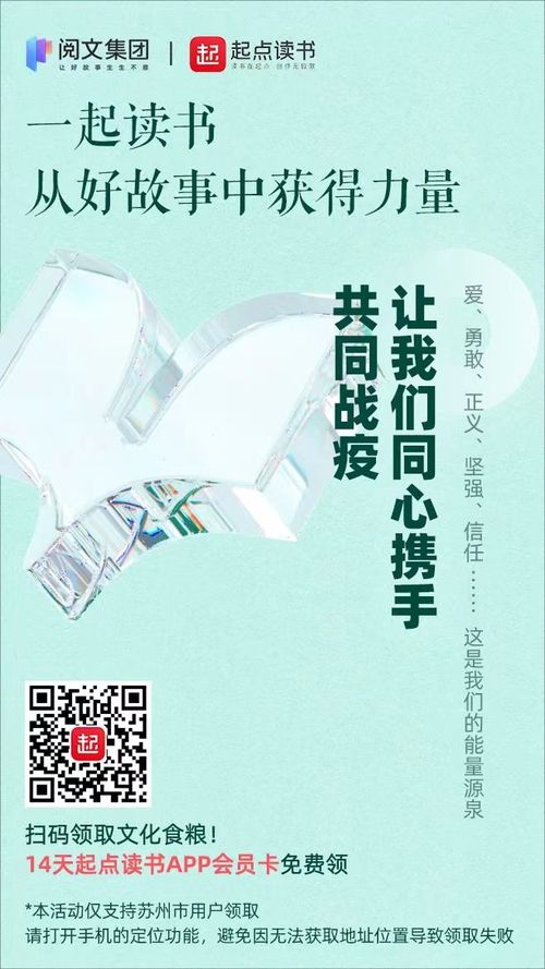 为了丰富疫情下苏州市民的精神文化生活,“起点读书”App日前起向苏州市民免费发放300万份起点读书14天会员卡,希望大家能通过阅读的方式,放松身心,获得能量。
