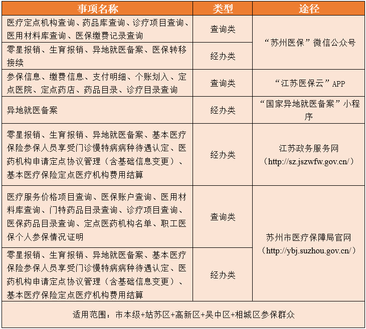 单位及职工参保登记、信息变更、参保单位缴费基数申报、生育津贴支付、一次性营养补助、大病保险补偿、符合资助条件的救助对象参加居民医保个人缴费补贴、基本医疗保险定点零售药店费用结算。