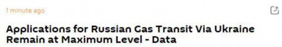 俄罗斯卫星网26日消息,根据乌克兰天然气运输系统运营商的数据,欧洲对从乌克兰过境的俄罗斯天然气的申请目前仍处最高水平。