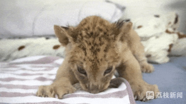 我们在保育室看到,别看薇薇奶声奶气的,最为活泼好动,这里闻,那里嗅,始终上蹿下跳,对四周好奇地探索,比起薇薇,如意文静很多,每天多是静静地趴着,是一只安静的美狮子。