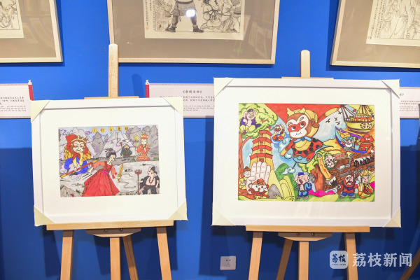 笔者在采访中了解到,本次大赛自今年1月18日启动以来,共征集到1998份投稿作品,得到了各学校的大力支持。孩子们和老师们踊跃参加,贡献出了许多优秀的书画作品,引起了大家对于西游文化的讨论与关注。经过专家评审与线上投票相结合的评比机制,大赛共评选出一等奖10幅二、等奖30幅、三等奖50幅, 优秀奖713幅获奖作品和18位优秀指导教师和48家优秀组织单位。获奖作品均在时畔书房艺术空间展出,并收录在《连云港市首届少儿西游记主题美术书法大赛》画册中。