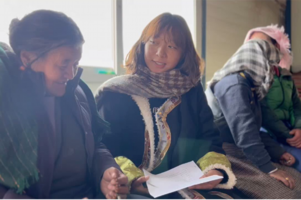 巴桑吉宗是江苏财院职业技术学院青藏1班大学生,寒假期间,她和同学扎央在家人的陪同下,冒着严寒在白雪皑皑的青藏高原奔走一千多里,走访了当雄县、乌玛乡等多个村落,为当地100多名农牧民普及法律知识。