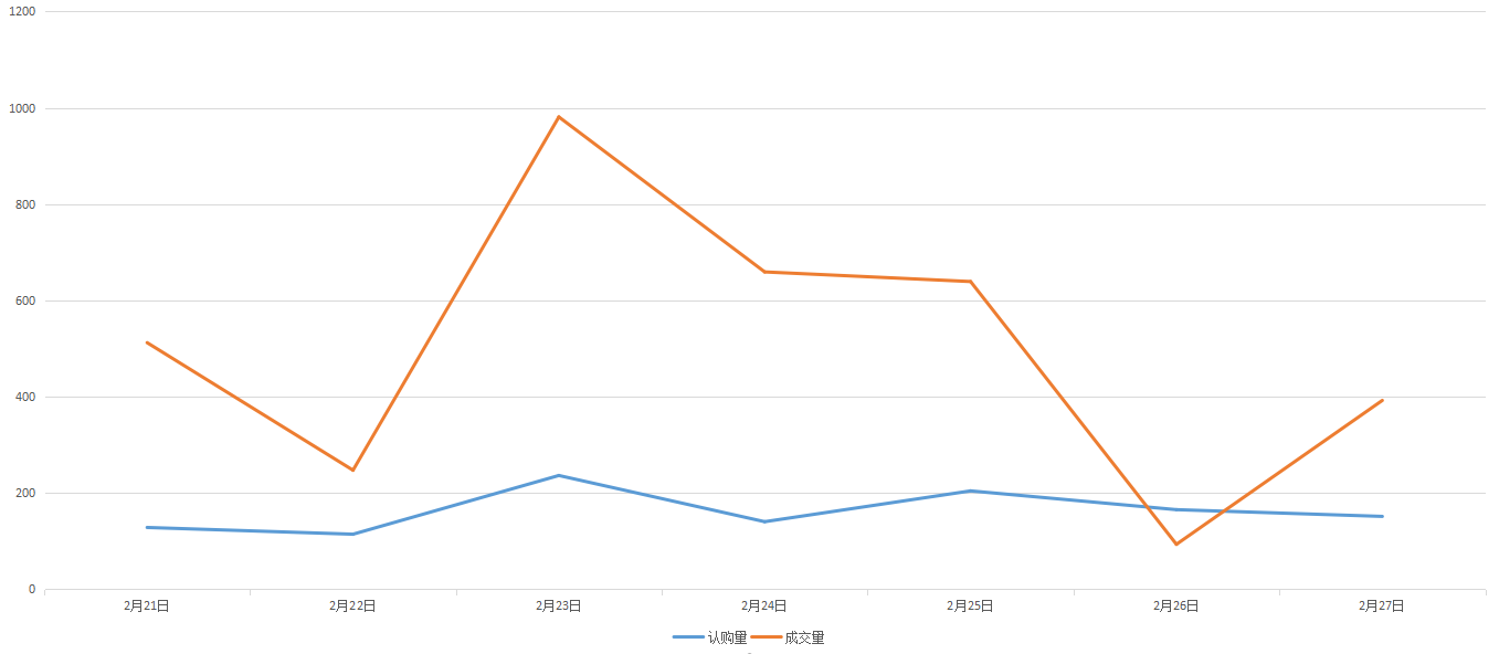 据南京网上房地产数据显示,上周(2月21日-27日)南京楼市认购商品住宅1138套,成交3523套,日均认购约162套、成交约503套,环比前一周(认购793套、成交1354套),认购量上涨43.5%,成交量上涨160.2%。