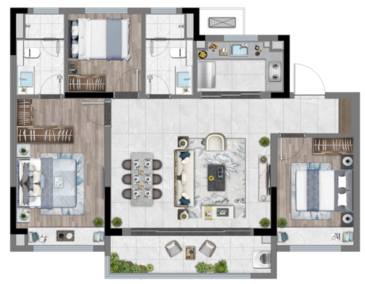 此次开放,龙湖·天玺也曝光了两大重磅户型,建筑面积约85㎡、105㎡三居洋房,户型方正,客餐厅一体格局,均规划双阳台。其中建筑面积约105㎡户型产品更是难得的大横厅设计,整体格局方正、利用率极高,放眼整个南京市场,该户型也十分优质难得。