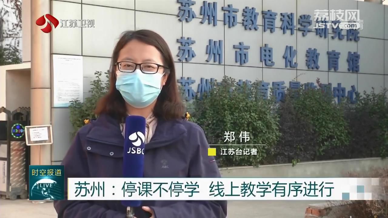 江苏台记者郑伟说:“2月14日起,苏州市中小学校、幼儿园暂缓开学,全面进入居家在线学习阶段。我们从苏州市教育科学研究院了解到,他们组织了各学科教研力量,全力以赴保障线上教学平稳有序进行。”