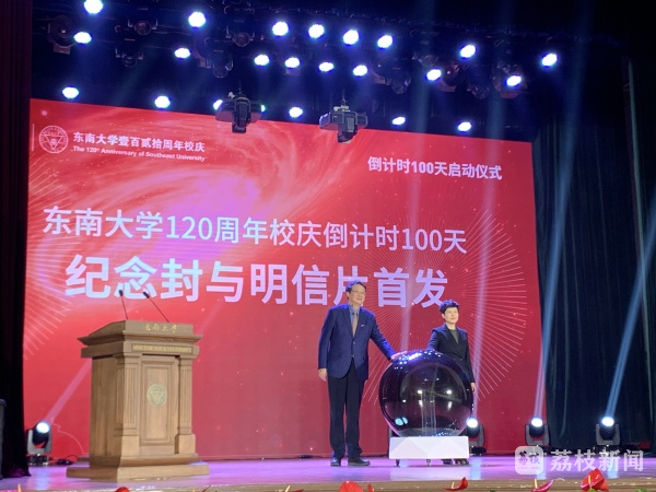 2月26日上午,距离6月6日东南大学120周年校庆一百天之际,东南大学在120年前的建校地——四牌楼校区举行特别的倒计时100天仪式。活动现场,倒计时牌亮起、重要活动发布、全球校友地标点亮接力、“云捐赠”平台启动、校庆志愿者招募、倒计时百天纪念封与明信片首发、 “元宇宙”建设启动等一系列项目纷纷亮相,三万余名师生校友通过哔哩哔哩、东南大学官方微博和微信视频号等观看了现场直播。
