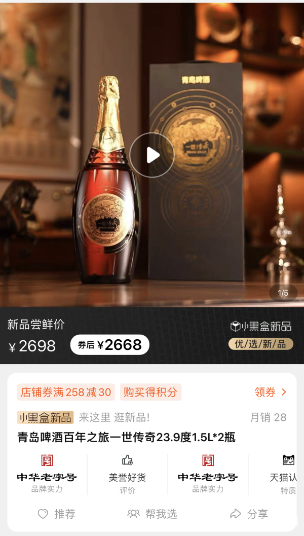 记者打开某线上购物平台,搜索“高端啤酒”后,不少包装精美的千元啤酒映入眼帘,价格在1000元至3000元不等。比如某啤酒企业推出的“虎年限量版”高端啤酒,每瓶1588元,近一月有几十人付款,某国产品牌推出的一款2支装的1.5升啤酒折后价2668元,每月达上百的销量。啤酒经销商张彭在多个平台开有酒类经销网店,线下也拥有一家烟酒行,他告诉记者,高端啤酒虽然销售量不是很大,但常有人咨询要货,张彭介绍:“店里面、网上总有人来找,但因为销量不大不能囤太多,有时候没货了就要调货,这种产品去年就有了,很多都买来送人的、自己乐意喝的也有,我过年的时候带了两个回家尝尝,家里人觉得口感上面挺好的。”