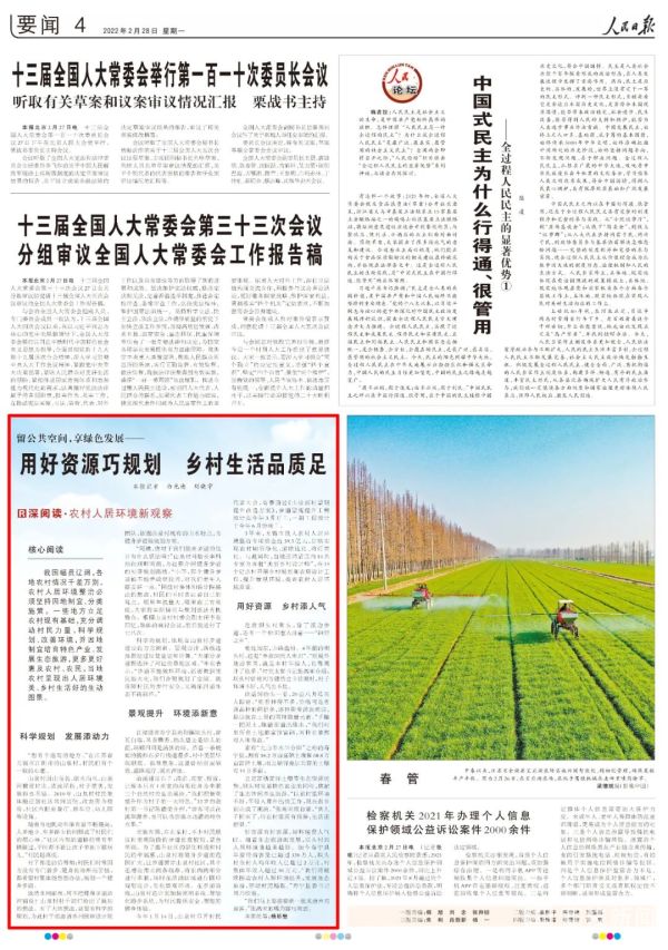 科学规划健身步道,为发展添活力,2月28日出版的《人民日报》以“留公共空间,享绿色发展——用好资源巧规划 乡村生活品质足”为题,报道了周庄镇山泉村提升社区居住环境、村民幸福感的暖心做法。