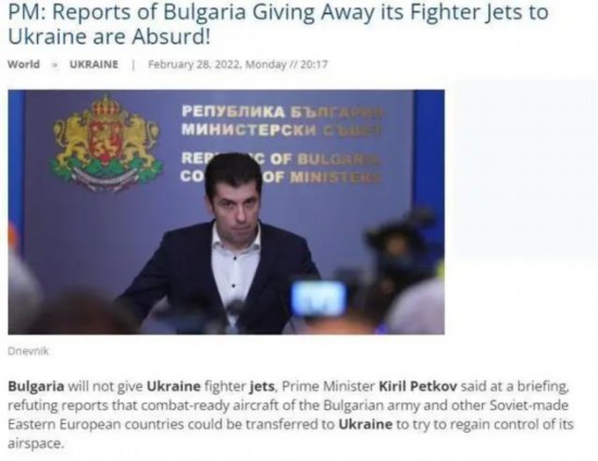与此同时,美国政治新闻网欧洲版的记者Hans von der Burchard在28日早些时候发推文称,据他所知,波兰政府拒绝参与这一拟议的安排。此外,他也表示,保加利亚总理佩特科夫的发言人称,保加利亚政府完全拒绝了向乌克兰运送战斗机的想法。