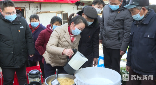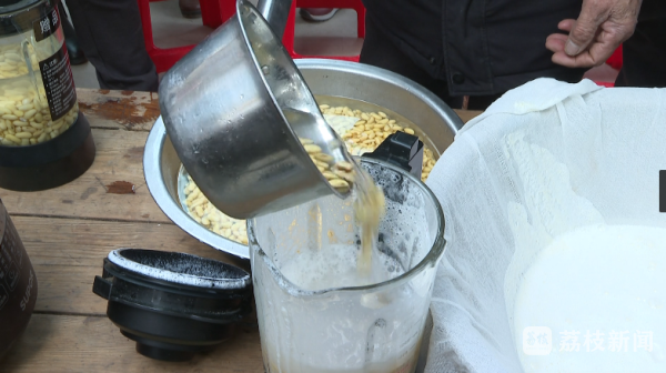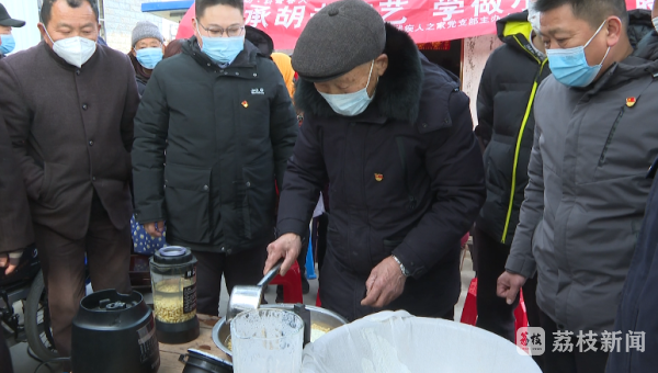 日前,胡老家门口在杨长春的牵线安排下,三十多名残疾农民和附近居民如约来到胡老家中学习制作豆腐,现场学徒们围成一圈精磨豆子、熬煮豆浆、妙点卤水、压制成型……胡老这一道道工序做下来,学员们看得津津有味。