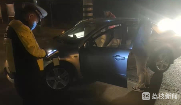 2月28日22时18分许,徐州市淮海国际港务区大队民警巡逻至祥湖路与香山路路口时,发现一辆行驶中的小型轿车形迹可疑,执勤民警随即将该车拦停检查。