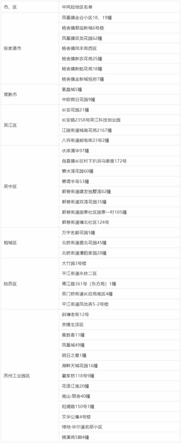 根据国务院联防联控机制有关规定,经市指挥部研究决定,自发布之日起,对苏州市部分区域疫情风险等级进行调整: