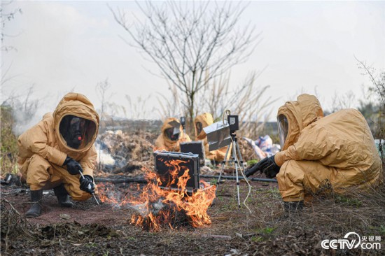 官兵对有毒物质进行侦检