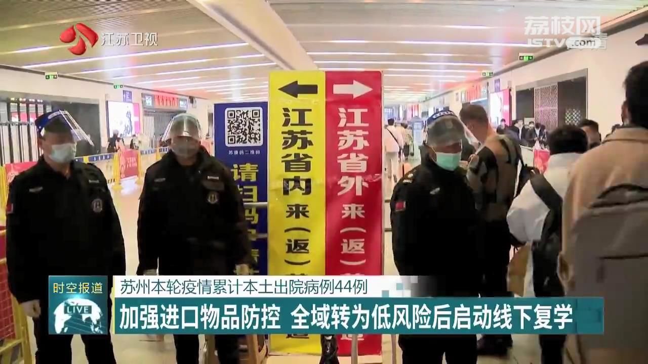 目前,苏州加强进口物品防控;筑牢水路口岸疫情防控,持续加强中高风险地区来(返)苏州人员的排查管控,坚决阻断疫情跨省(市)传播渠道。此外,苏州将在“全域转为低风险地区”后第一时间启动线下复学工作,优先保障高三、初三等毕业年级率先复课,分期分批组织中小学、幼儿园依次恢复线下教学。