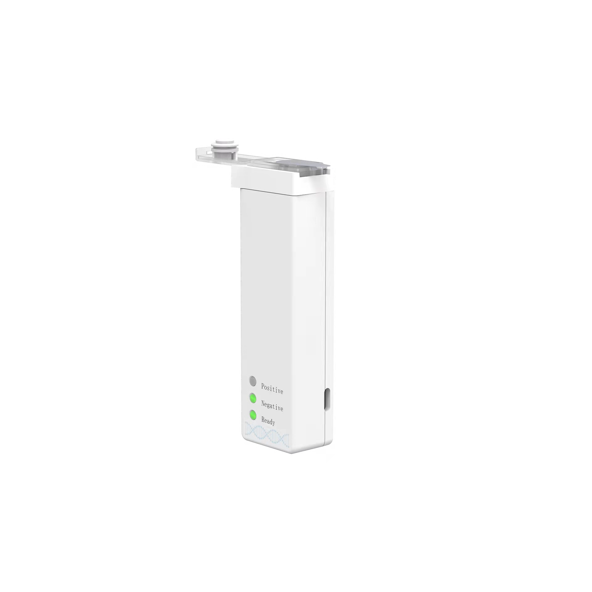 该款一体式检测卡盒在保证较高检测灵敏度的基础上(核酸扩增的Ct值在35左右),还具有几个鲜明的特点:1、快速性,30分钟内即可出结果;2、便携性,实现一手掌握、随带随用;3、安全性,全密封体系,避免核酸产物污染;4、易操作,完全无医学背景的人也可轻松使用,一学即会;5、易判断,指示灯快速辨别。