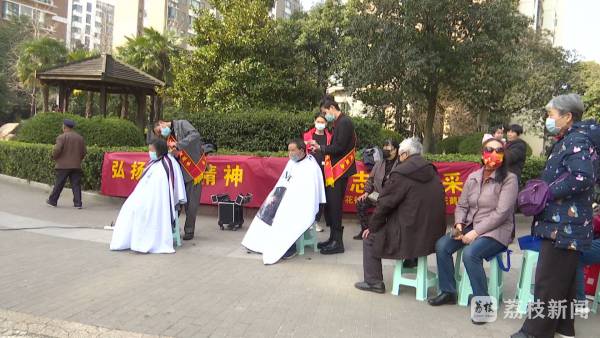 3月3日一早,在南京雨花台区雨花街道阅城国际小区广场上,花神庙社区志愿者们在家门口为辖区居民提供便民服务。理发店店主秋天刚刚加入社区社工站志愿服务队不久,提供这次便民服务前,他和同事早早做好了准备。
