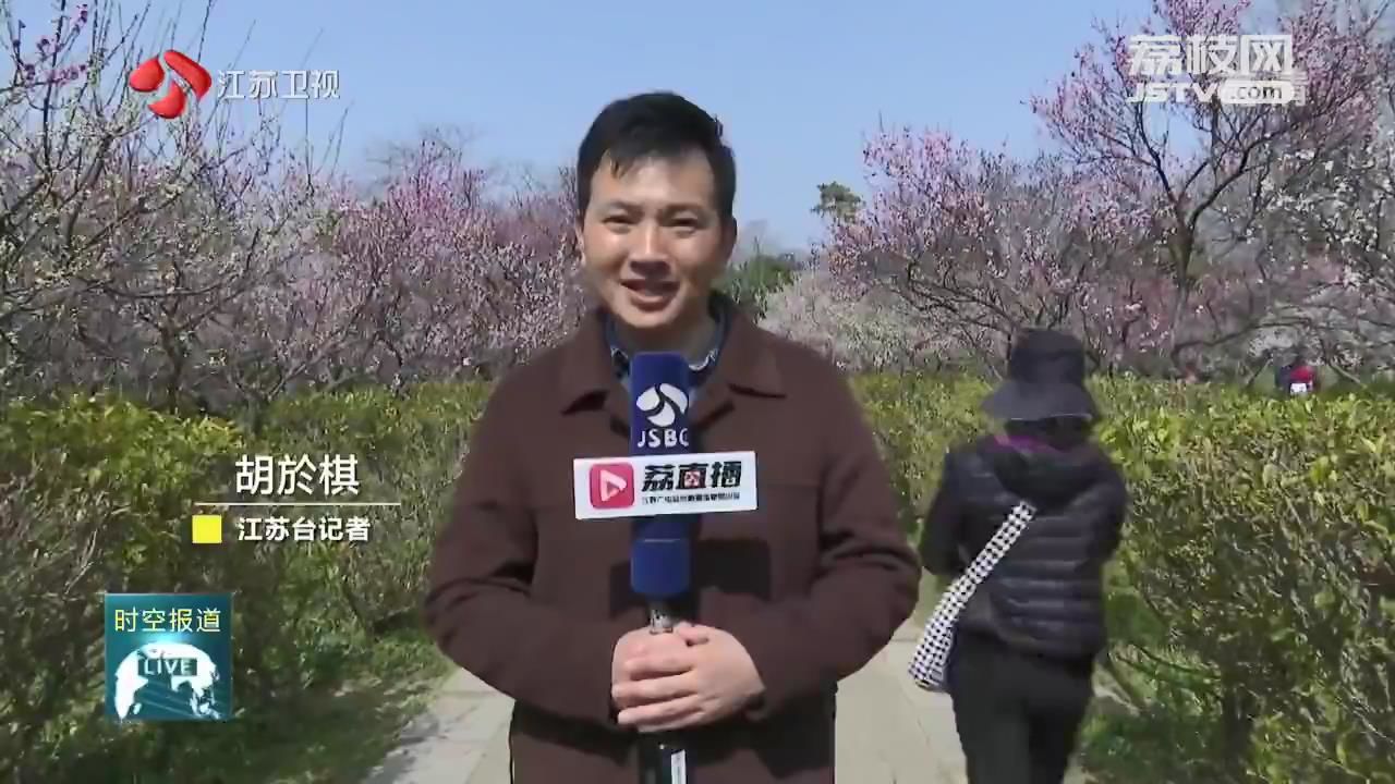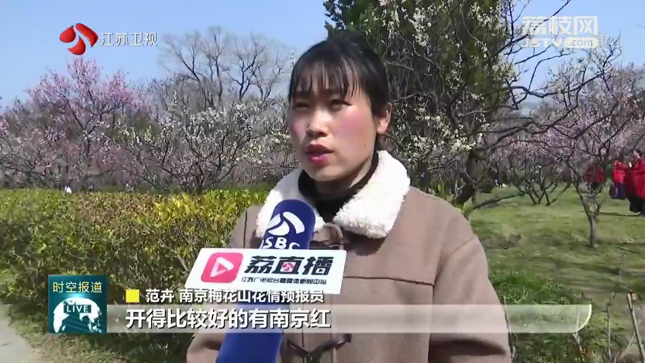 江苏台记者胡於棋说:“我现在所在的地方是南京的梅花山。眼下,这里的梅花已经进入最佳观赏期。漫步在梅林间,就可以看到各色梅花竞相绽放。吸引着各地游客驻足,留下与春天的合影。”
