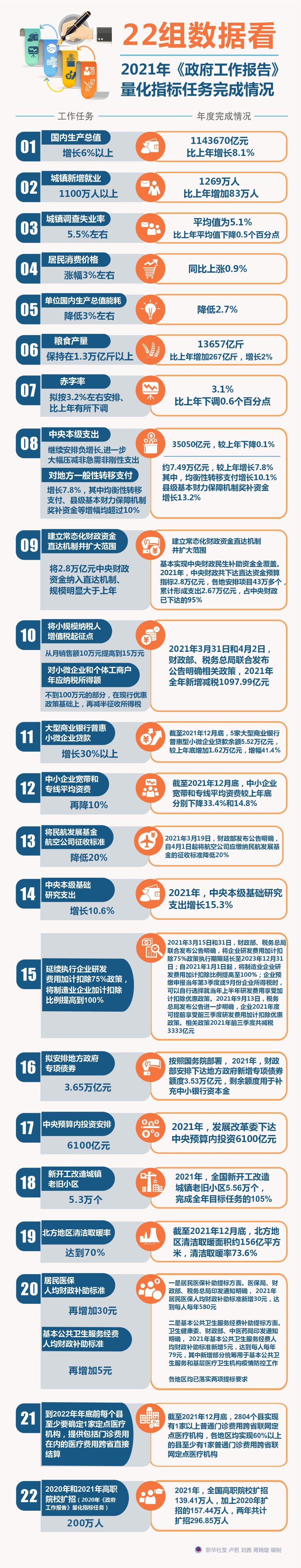 22组数据看2021年《政府工作报告》量化指标任务完成情况