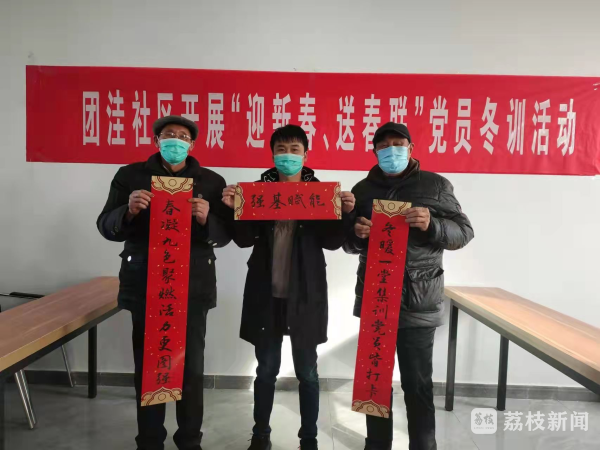 冬训惠民生,年“理”暖意浓。“冬暖一堂集训党员皆打卡,春凝九色聚燃活力更图强,横批:强基赋能。”指着大门上的对联,70多岁的老党员严守奎笑着说,今年志愿者们送来的冬训对联、主题口罩、学习书籍等年“理”让我们过了一个不一样的新年。