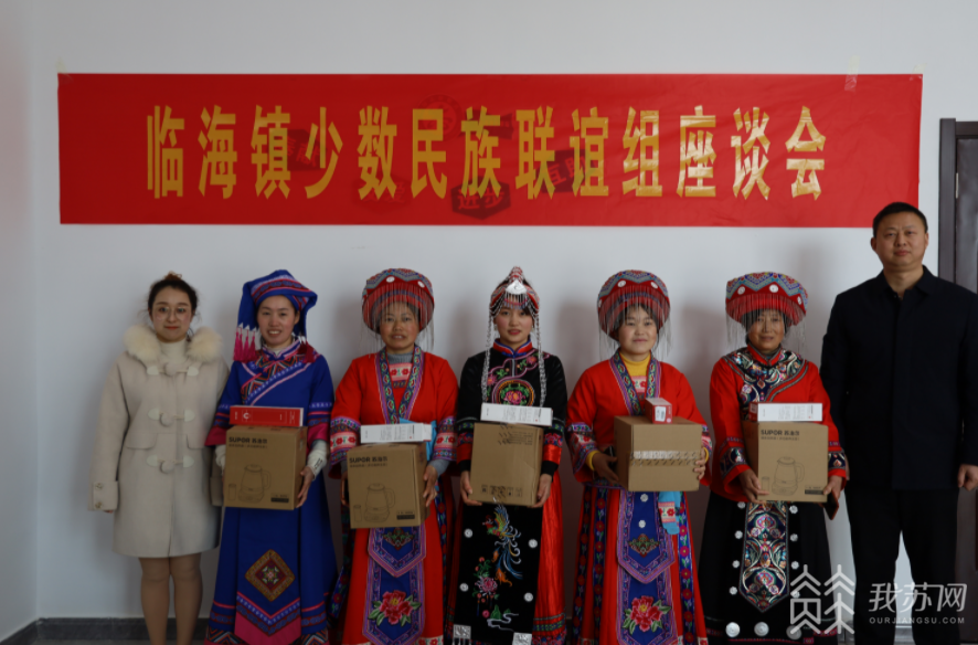 我苏网讯 近日,江苏省射阳县临海镇组织少数民族代表组建了少数民族联谊组,并在临海镇金海社区召开座谈会,来自畲族、苗族、壮族、土家族等少数民族代表共聚一堂,畅谈生活,表达了对美好生活的向往。